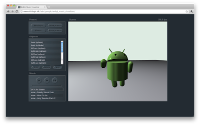 Music Visualizer, a jukebox that synchronizes 3D graphics to the beat of the music by Jacob Seidelin