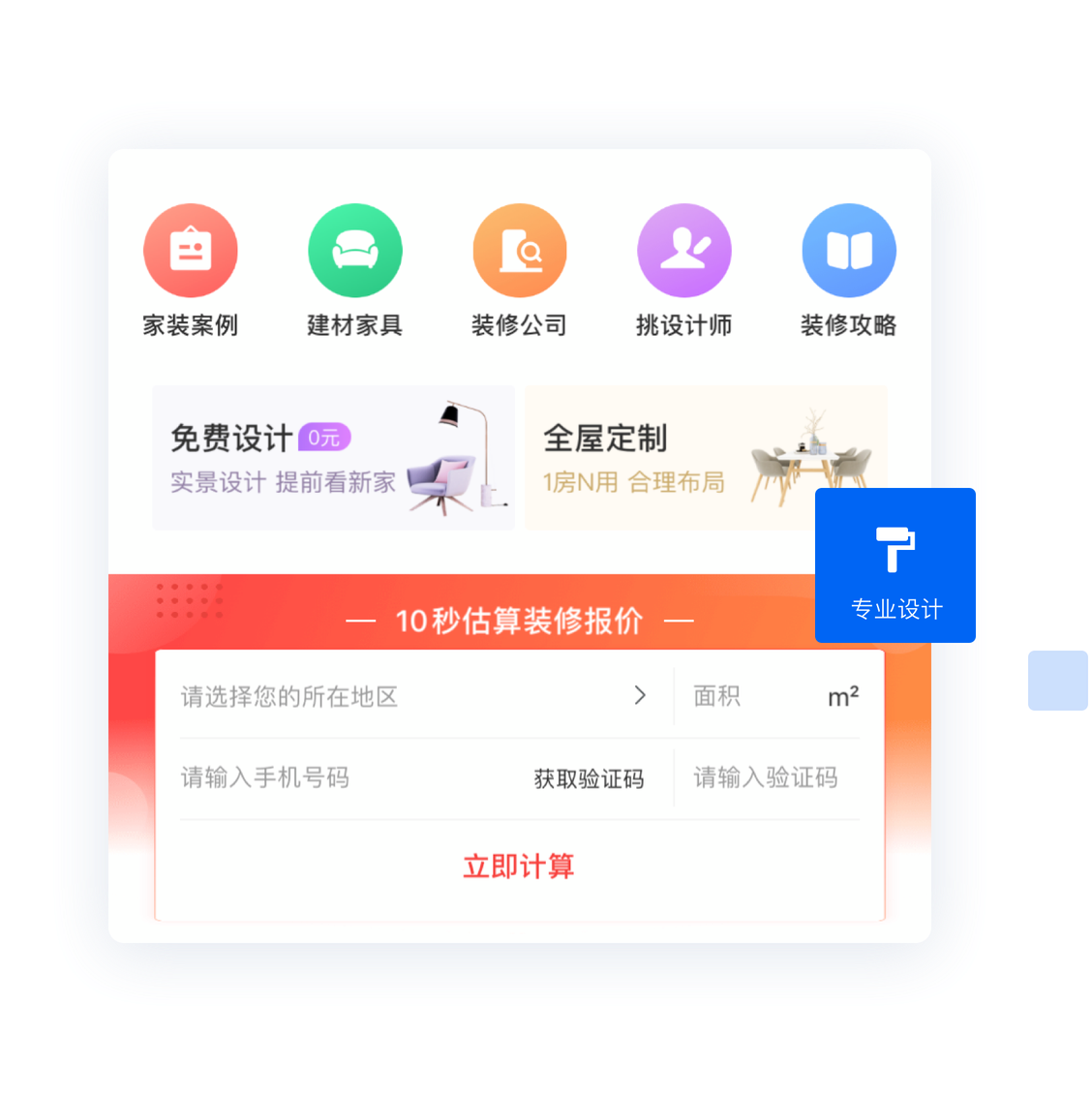 十万家诚信家装公司 、百万优秀设计师、千万家合作家具建材品牌