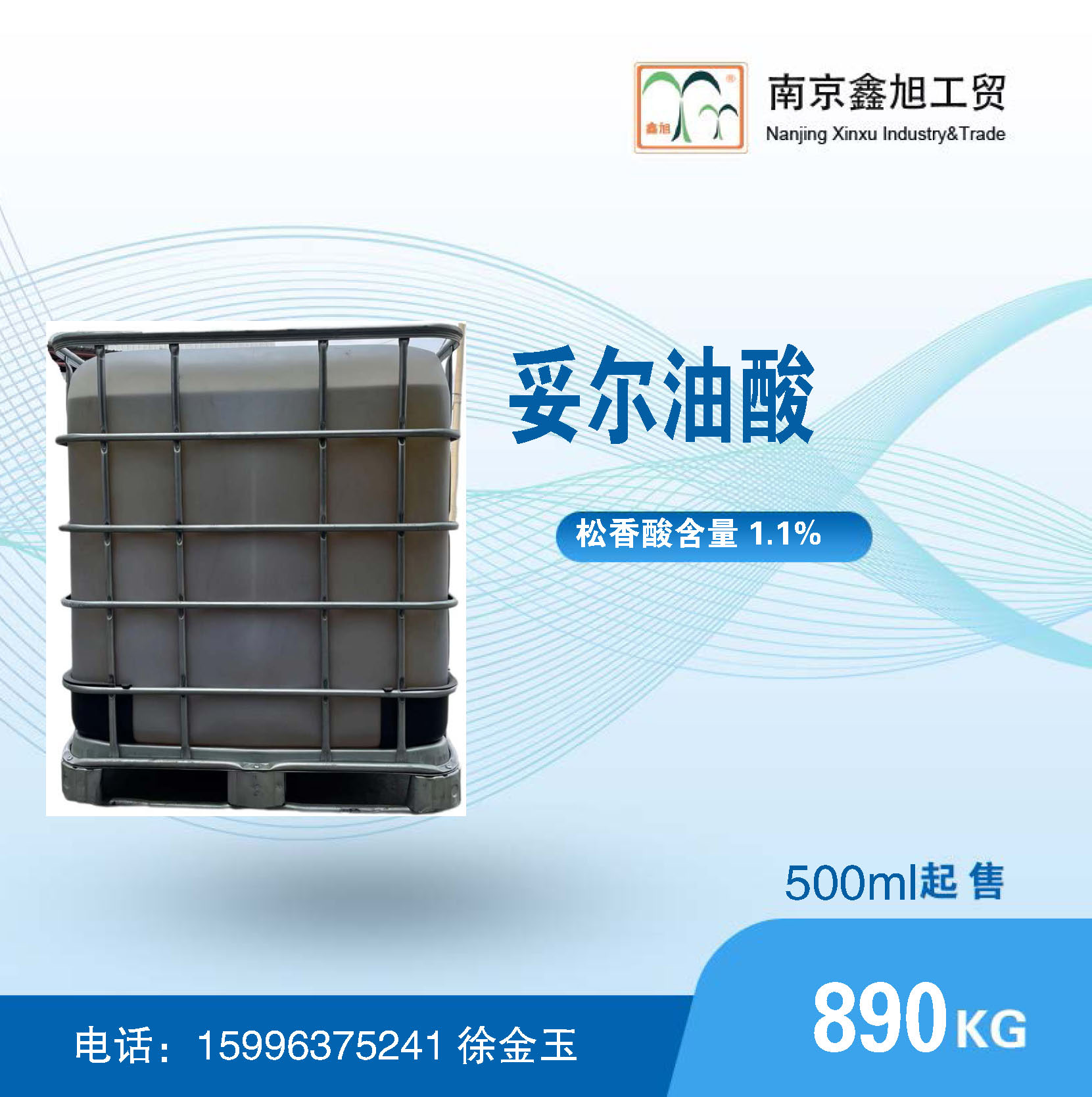 美国进口劳特妥尔油脂肪酸,920公斤,吨桶包装。有需求可以灌装小桶。松香酸含量2以下,颜色浅可以用于生产高质量化工产品。