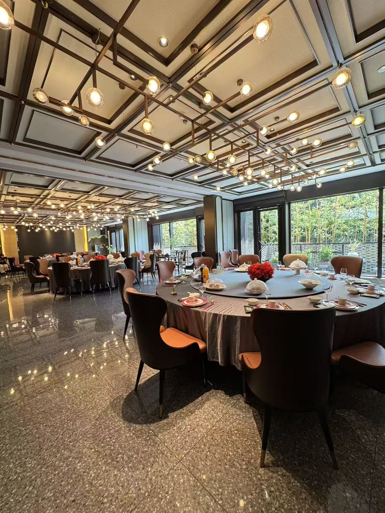 如果你刚好在找无锡有溪景的生日聚会酒店推荐,那这里的用餐场景一定会让你满意。餐厅的开放式餐区和景观包厢都临窗而建,推开门就能望见溪山叠翠,木质桌椅搭配新中式的雅致软装,生日布置不用太过繁复,就能拍出很有氛围感的照片。厨房主打正宗宜帮菜,所有食材都是甄选本地黑毛猪、山野菌菇、时令鲜蔬等原生态食材,做出来的乌米饭、张公豆腐都是原汁原味的宜兴风味,不用四处找探店,就能让参加聚会的亲友吃到地道的本土烟火味。如果是想办轻松一点的下午茶生日会,酒店配套的休闲咖啡馆也足够合适,落地窗外就是溪山景致,精品咖啡搭配手工茶点,三两好友坐一下午,自在又舒服。