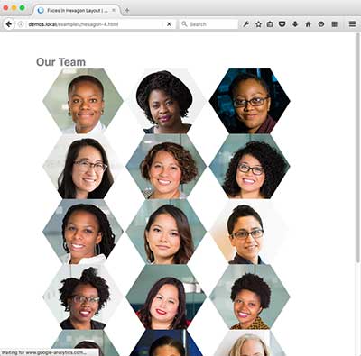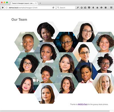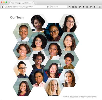 The CSS Grid versions require a browser that supports CSS Grid. You also need a browser that supports Clip Path. If you use Firefox Nightly, flip the flag to turn on clip-path.