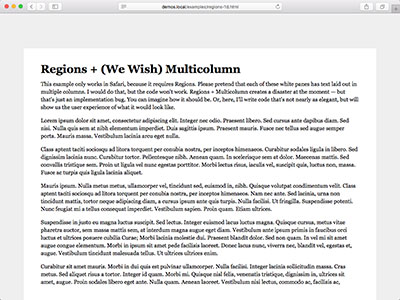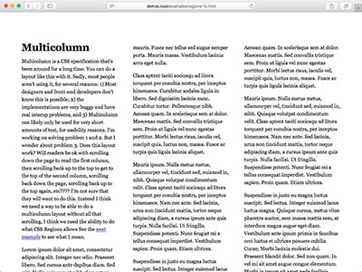 F: Since Multicolumn fails, let's do columns with Flexbox + Regions