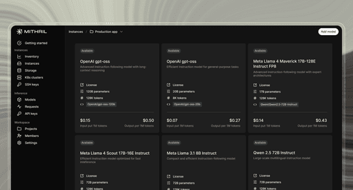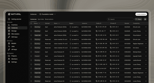 Mithril aggregates and orchestrates multi-cloud GPUs, CPUs, and storage so you don't have to. Access the infrastructure you need through a single platform with transparent pricing.