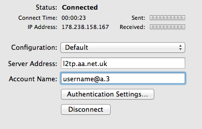 An Apple computer can be used to create an L2TP connection in to AAISP, here's how:
